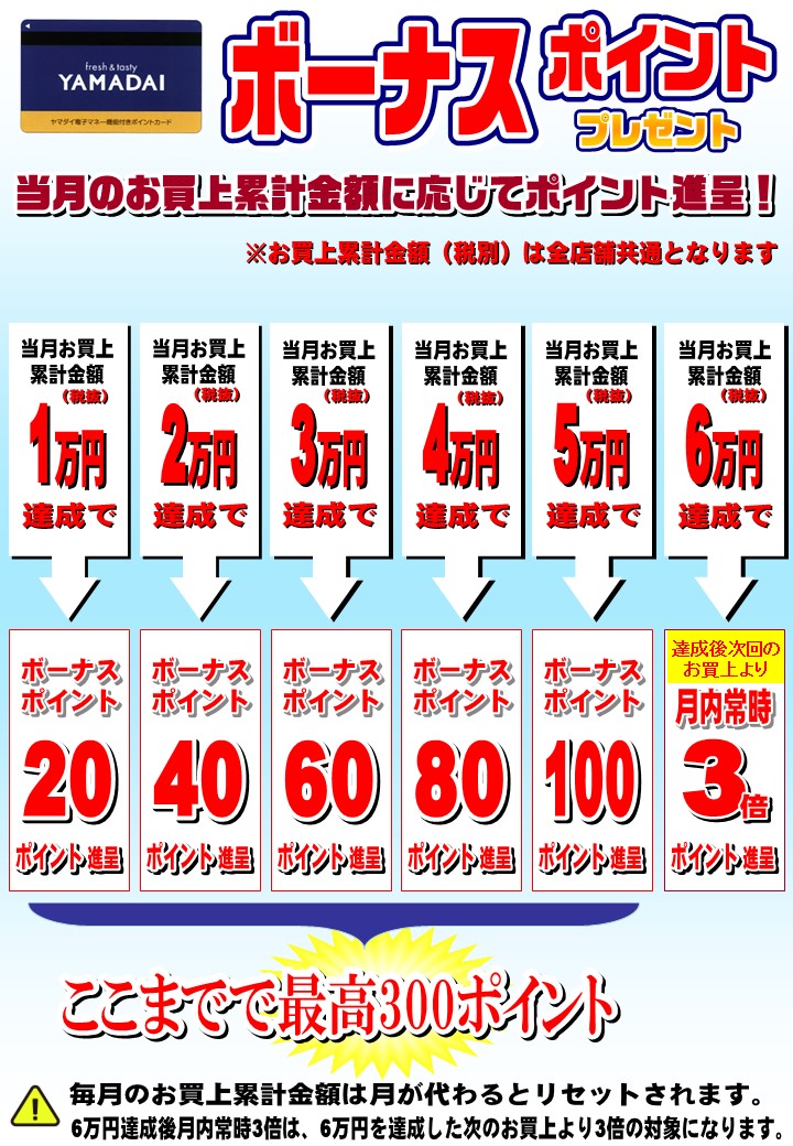 ※クレジットカードやヤマダイカード以外の電子マネー・各種商品券にはポイントを付与できませんので、ご了承お願い致します。
