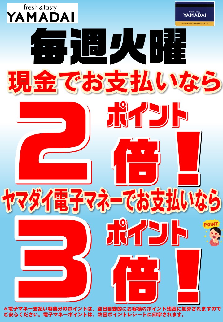 • 毎週火曜日 電子マネーお得キャンペーン!