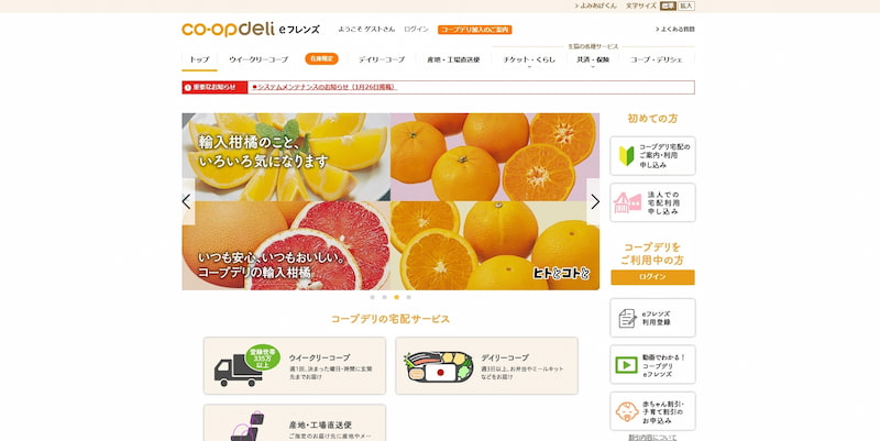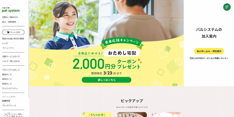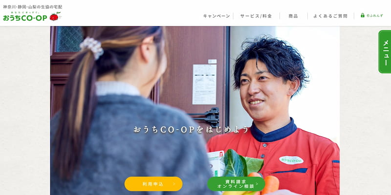 関東・甲信越を中心に約170万世帯が利用する生協の宅配サービスで、新鮮な産直野菜や化学調味料不使用の食品に定評があります。