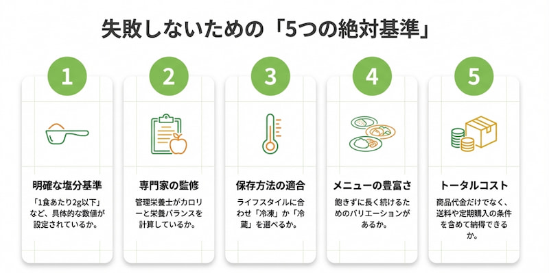 減塩を目的にするなら、塩分量の基準が明確な宅配サービスを選ぶことが大切です。
