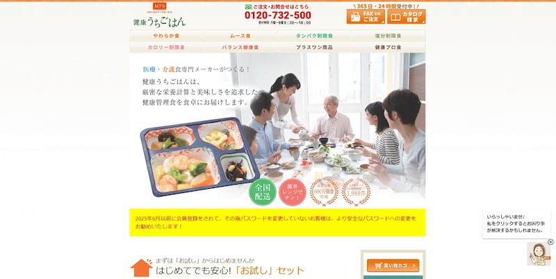 専任の「まごころスタッフ」が自宅まで直接手渡しで配達してくれるため、高齢者の安否確認も兼ねた見守りサービスとして多くの家庭に選ばれています。